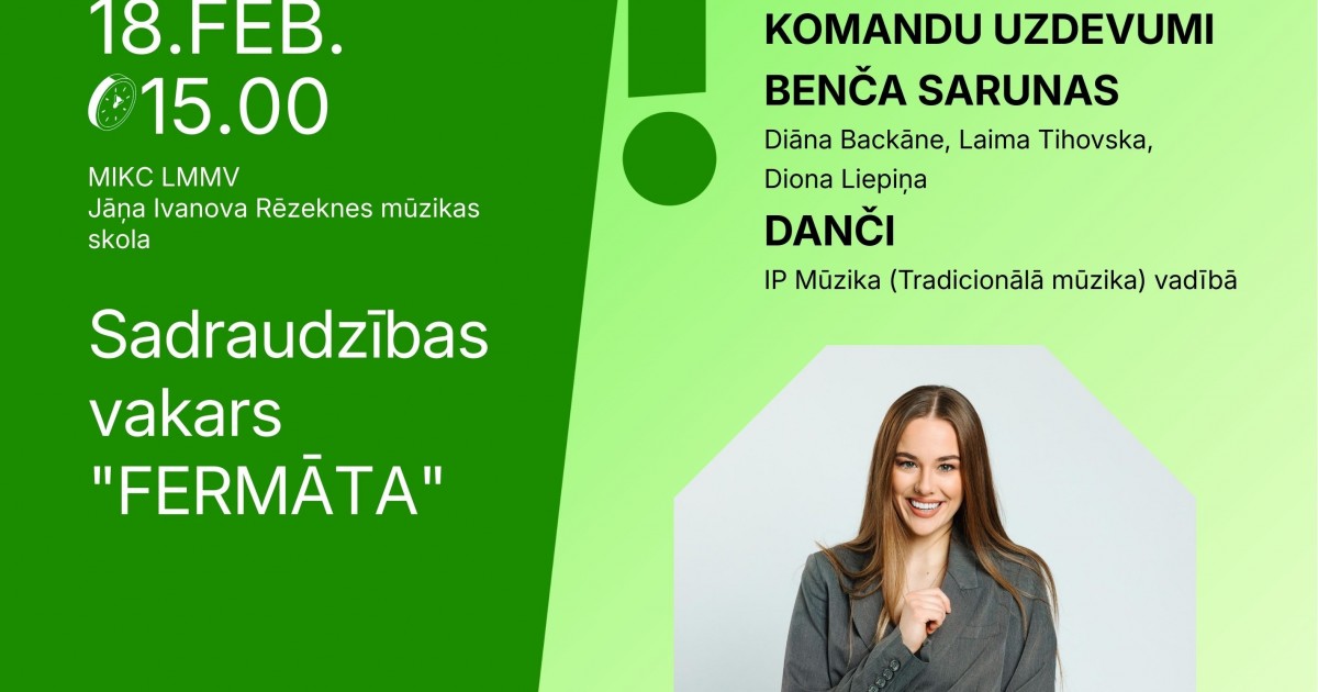 2026.gada 18.februārī MIKC “Latgales Mūzikas un mākslas vidusskola” aicina mūzikas skolu vecāko klašu audzēkņus uz sadraudzības vakaru “FERMĀTA” ar Jāņa Ivanova Rēzeknes mūzikas skolas audzēkņiem.