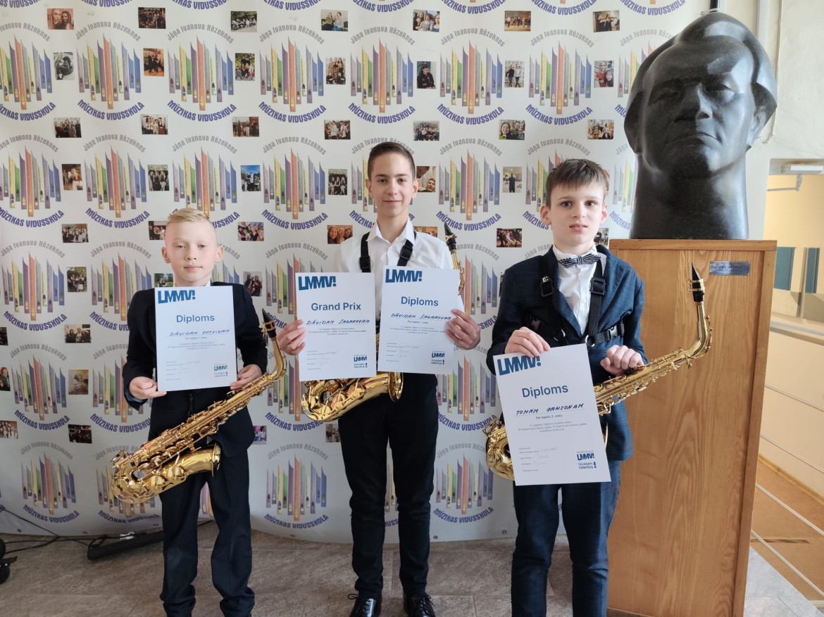 Īpaši liels prieks par mūsu jauno saksofona spēles skolotāju Artūru Vīndedzi, kuram šī bija pirmā konkursu pieredze ar saviem audzēkņiem – Dāvidu Kotkinu un Tomu Jansonu. Un, tik izcili rezultāti! Tāpat, milzīgs paldies mūsu koncertmeistarēm Aļonai Vīndedzei un Zitai Tišutinai par ieguldīto darbu un izcilo saspēli konkursā!